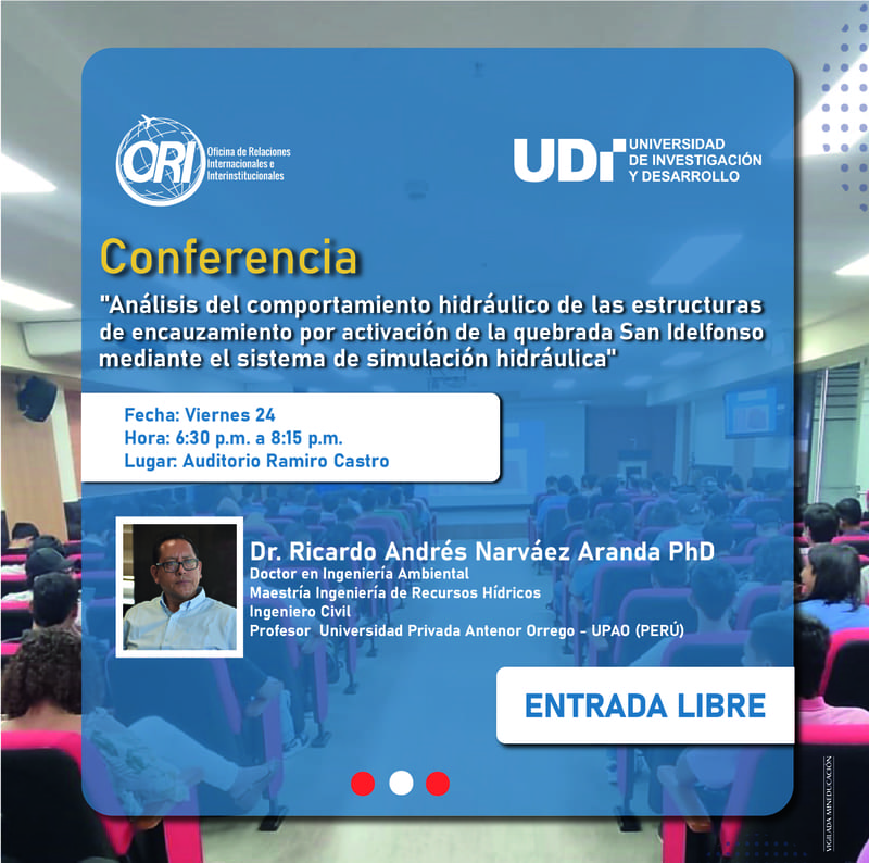 La Universidad de Investigación y Desarrollo - UDI continúa rompiendo sus fronteras para estrechar lazos académicos con sus países vecinos. En esta oportunidad, recibe al Dr. Ricardo Andrés Narváez Miranda PhD, Ingeniero Civil y Docente de la Universidad Privada Antenor Orrego – UPAO de Perú, quien nos está acompañando durante dos semanas con el fin de potenciar nuestro programa de Ingeniería Civil, impartiendo sus conocimientos y experiencias académicas y profesionales a nuestra comunidad estudiantil.