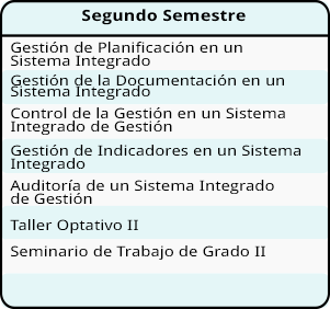 El Especialista en Sistemas Integrados de Gestión (HSEQ) egresado de la Universidad de Investigación y Desarrollo –UDI- estará en capacidad de participar en forma individual o colectiva en la planificación, documentación, implementación, mantenimiento y mejora de un sistema integral de gestión en el marco de las normas NTC ISO 9001 Sistema de Gestión de Calidad, OHSAS 18001 Sistema en Seguridad y Salud Ocupacional e ISO 14001 Sistema de Gestión Ambiental, todo ello dentro de un marco ético y de responsabilidad profesional.